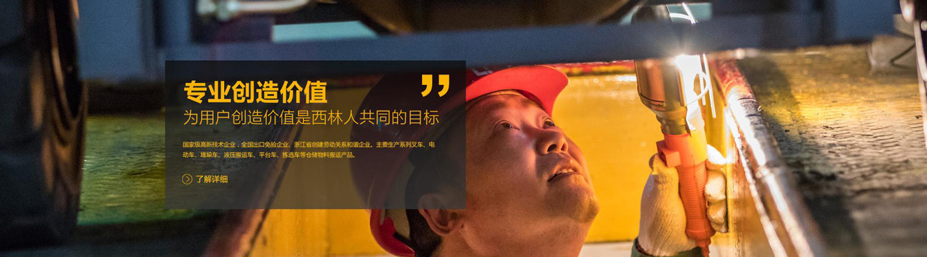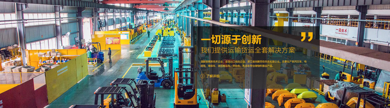 國(guó)家級(jí)高新技術(shù)企業(yè),全國(guó)出口免驗(yàn)企業(yè)、浙江省創(chuàng)建勞動(dòng)關(guān)系和諧企業(yè)。主要生產(chǎn)系列叉車、電動(dòng)車、堆垛車、液壓搬運(yùn)車、平臺(tái)車、揀選車等倉(cāng)儲(chǔ)物料搬運(yùn)產(chǎn)品